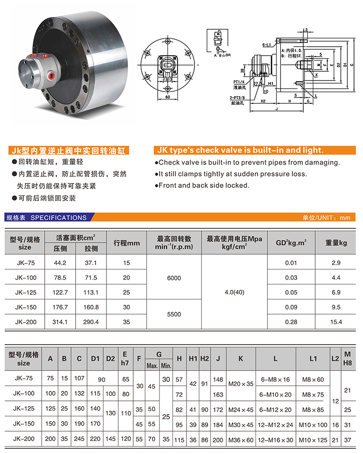 JK 內(nèi)置逆止閥中實回轉(zhuǎn)油缸